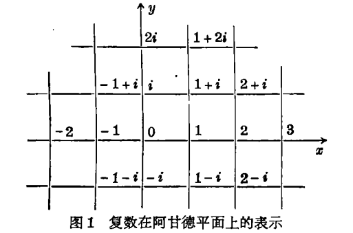 要说明何以如此,让我们先指出用普通几何学表示复数的标准方法。我们考察一个有笛卡儿坐标轴x、y的欧氏平面。复数ζ=x+iy(x和y都是实数)在这个平面上(叫做ζ的阿甘德平面)由坐标为(x,y)的点代表。对于复数的和、差、积、商都有简单的几何法则。