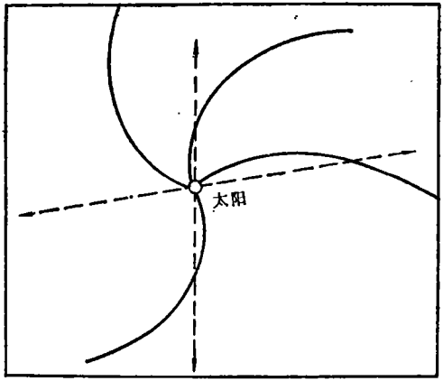 风背离太阳以辐射的方式传播,但考虑到风的旋转,太阳风的磁场在行星际空间中具有螺旋线的形式。