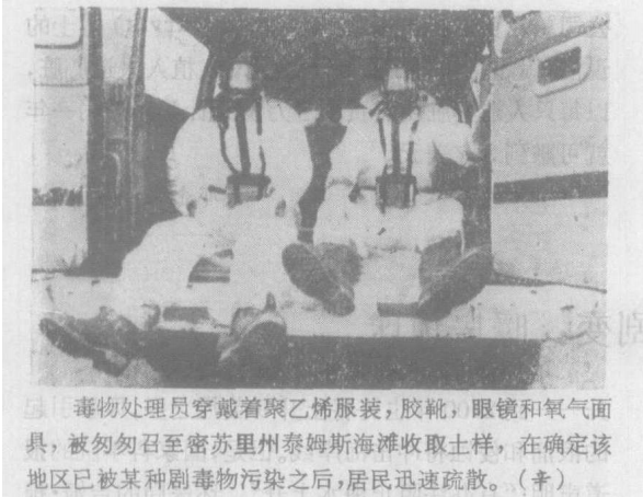 生态环境保护公司总部设立纽约偏僻地区,公司的规划经理,四十二岁的西尔瑞尼有时早上工作,这时他便穿上聚乙烯服装,戴上泡沫头盔和橡皮手套,登上沉重橡皮靴子并带上氧气包,凡皮肤暴露部分均用厚厚的防护胶布遮住。查看过化学废物后,他便和工程师和专家们拟定出一项净化该地区的计划。西尔瑞尼说,污水经常是先用巨大的抽吸装置吸去,而有时则就地处理或净化。尔后,去除受到污染的泥土,再喷射石灰或飘尘使有毒物质凝固,用前端装载机运走,这些固体废物最后被装入泥土围成的泥缝或其它贮藏设备。