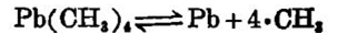 在1937年以前,确实存在许多这种类型的暗示。1900年冈伯格(Gomberg)就提出了三苯甲基自由基的存在,在当时认为,这些'原子团'是与有机化学毫不相干的奇异质体。在1920年代,对于气相中的小分子热解反应以及光化学反应,物理化学家已经掌握了一些自由基作为中间体的证据。例如,帕内思(Paneth)和霍菲迪茨(Hofeditz)在1929年证明,当在气相中热解的四甲基铅蒸汽流过一根导管时,不仅在管壁上沉积出铅镜,而且还产生一种短寿命的中间体,这种中间体能把前边顺流沉积下的铅镜除掉。他们利用如下与温度有关的平衡,对这一结果做了解释。