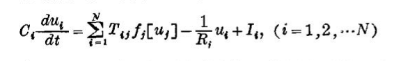 霍普菲尔德神经网络中的人工神经元模型由下列一组非线性微分方程来描写: