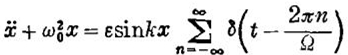 描写。方程右侧的力包含无限多模式。它描写一个“被抖动的”振子(a“kicked” oscillator),抖动的周期为2π/Ω。