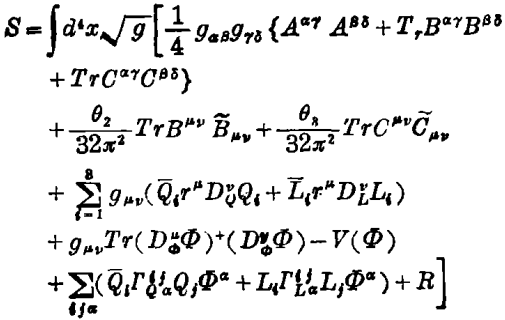 这个夸张的说法充满了没有很好定义的术语:有趣,美、有力。当我们说一个方程是美的,或者说一个物理概念是有力的,我们的意思是什么?试考虑一下标准模型的数学表述,即前面讲到的强、弱和电磁相互作用的理论,我们相信它能描述一直到10-15cm距离的物质结构组分及其相互作用,描述这个理论的作用量由如下的数学表达式给出: