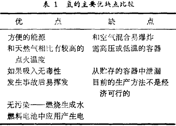 建议用氢作燃料的人和反对者很快分别指出这种燃料的优点和缺点,为方便见,这些观点列举于表1中。