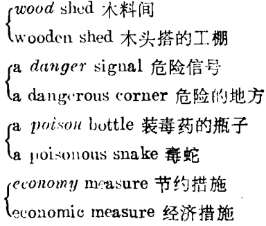 当然,这种顶替不是任何情况下都划等号的(如以atom bomb顶替atomic bomb)。名词作定语与同根形容词作定语有时意义不同。试比较: