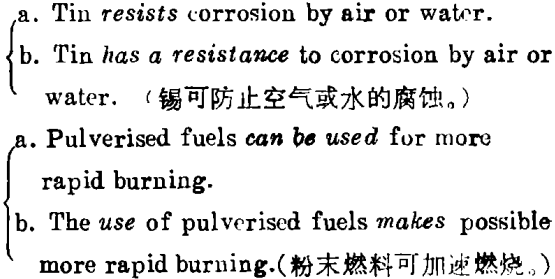 比较之下,上列两个b句由于用了名词化结构,分别加上中性动词has,makes,就较为客观地反映了tin和pulverised fuels的自然特性。