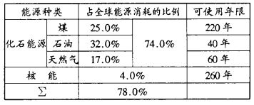从表中数值可以看出,目前占全球能源消耗总量近50%的石油和天然气在21世纪中叶将消耗殆尽,虽然占目前全球能源消耗量25%的煤还可以继续开采使用,但开采的难度越来越大,成本也会越来越高。核能虽然正在大力发展,但占全球能源消耗的比例毕竟有限。