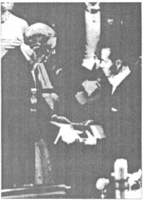 图为1957年12月10日李政道接受瑞典国王颁发的诺贝尔奖