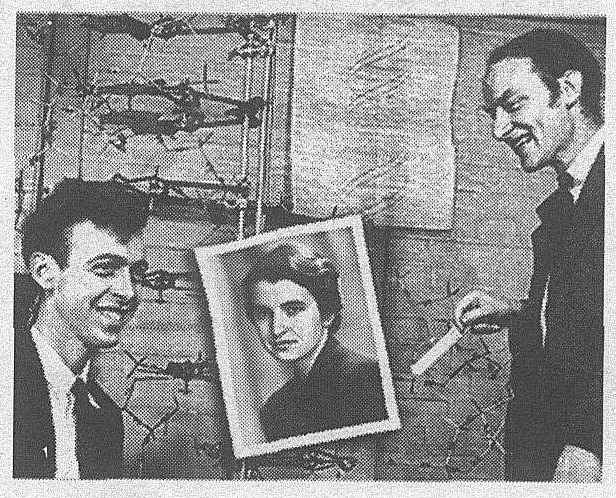 但不久他们就摸索到正确的答案,由腺嘌呤和胸腺嘧啶,鸟嘌呤和胞嘧啶组成一对,结合成两根骨架,这样双螺旋模型就完成了。这不但是化学上的完美分子模型,而且给遗传学的根本问题带来了答案。