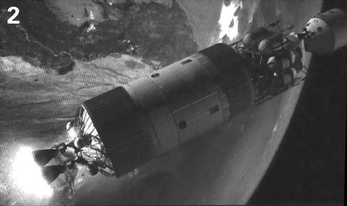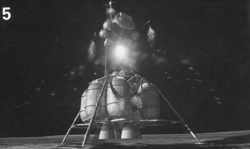 登月舱的上半部分飞离月球与在月球轨道上待命的载人舱对接后飞向地球