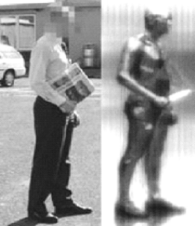 用太赫兹波成像, 可清晰地看到藏在报纸内的匕首, 有助于提升反恐安检水平