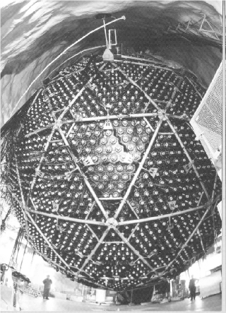 2005年7月,中日美法四国科学家组成的联合研究小组,利用日本东北大学位于岐阜県的地下装置"KamLAND",首次捕捉到产生于地球内部的这种物质——中微子。图为“KamLAND”观测装置内部的光电倍增管