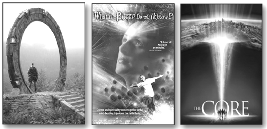 在1994年上映的电影《星际之门》中,表演夸张的詹姆斯·斯派德(James Spader)扮演的埃及考古学家在一个军事工业中心从事科学研究———持枪者可以通过一扇“门”进入另一个世界;而在涉及原子弹的电影中,科学家们转动着钥匙走进荒凉却令人着迷的世界,以及科学提供了新的运载工具———通往未来的时间机器和飞向其他星球的火箭。
