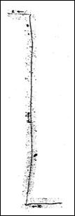 用摄影感光乳剂捕获的一幅早期介子图像:通过宇宙射线碰撞而建立,介子从右下方进入,稍作停留,衰变成一个μ介子和一个中性的(因而是不可见的)中微子。μ介子继续从底到顶,衰变为一个电子和一个中微子。在高能粒子加速器开发以前,宇宙射线是发现新粒子的最丰富的来源