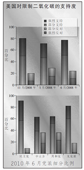 今年1月,耶鲁大学和乔治·梅森大学进行的一次民意测验发现,在2008~2010年间,相信全球变暖的美国人数量从71%下降到了57%,相信气候学家工作的从83%下降到74%。耶鲁大学负责民意测验的安东尼·雷兹罗维茨(Anthony Leiserowitz)表示,这一趋势反映出美国政治的一种变化:当国会开始讨论减少温室气体排放的具体步骤时,保守派却往往把议题集中在多大程度的污染控制将会损害或有利于不同的经济部门的纠缠上。