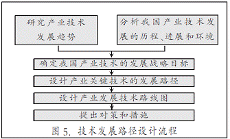 技术发展战略是指为了实现国家目标所选择的技术发展方向、所确定的行动方针以及资源分配方案的总纲。因而,产业关键技术发展路径设计是实现未来中国技术跨越式发展的关键。技术发展路径设计流程见图5。