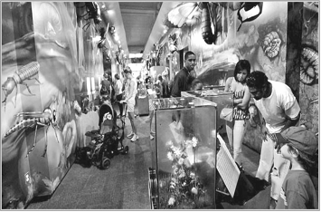 昆虫在这个世界上扮演着很多角色,从帮助农作物授粉的轻盈可爱的蜜蜂、蝴蝶,到那些清理污物的令人厌恶的苍蝇。博物馆中一段令人新奇的影片讲述了苍蝇怎样将老鼠尸体“消灭”的:首先苍蝇将它的卵产在老鼠眼睛上,待孵化成蛆后,再将老鼠的腐肉吃得只剩皮毛,直至受到滋养的土地冒出了嫩芽。
