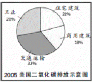 在美国二氧化碳排放量的39%来自于建筑(工业二氧化碳排放量28%、居住建筑物二氧化碳排放量21%、商业建筑二氧化碳排放量18%、交通二氧化碳排放量33%)