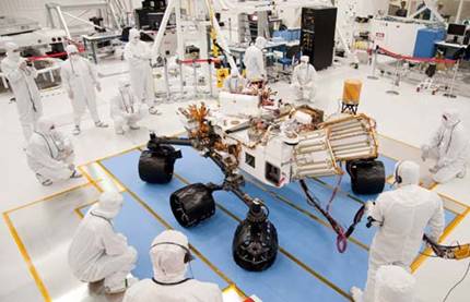 研究人员在无尘室中测试“好奇”号火星车