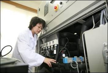 项目第一完成人谢晶教授在调试设备。谢晶教授是上海市制冷学会副理事长,上海冷藏库协会专家委员会主任委员,现任上海海洋大学食品学院副院长