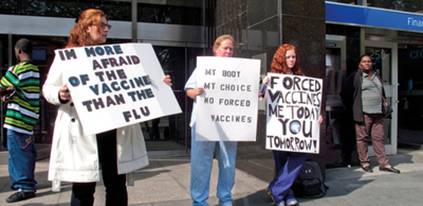 卫生保健工作者在纽约抗议强制接种猪流感疫苗