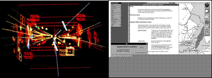 左图显示了1983年4月30日UA1实验中首次检测到的Z°粒子;右图为世界上第一个网站和服务器网址Info.cern.ch