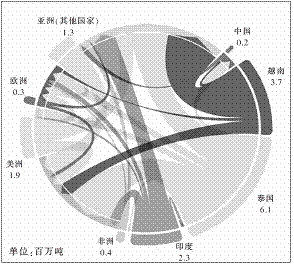 大部分大米都在其种植国消费掉,但是非洲日益增长的需求导致了更广泛的大米全球贸易。数据显示了2007-2011年平均每年出口的大米总量。
