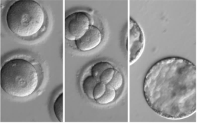 注射了携带引发肥厚性心肌病的基因突变的精子和基因剪切生物酶后,人类胚胎发育的不同阶段