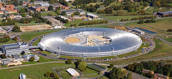 为极微小结构成像的工具可能是庞然大物。这个容纳钻石光源同步加速器的环形建筑物,周长为783米,而它探测的样品尺寸则小于毫米级,其成像分辨率达到原子水平的细节。该装置于2007年开放,是目前世界上最大的中能同步加速器。它提供了31条量身定制的光束线,分别用于极温和极压条件下的成像,在原子水平上探测电子和磁性材料,破解复杂生物样品的结构,利用微聚焦光谱学绘制复杂材料的化学成分图,以及纳米成像。