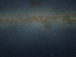 一张银河系中心的照片,人马座A*就在其中。这张照片由欧南台帕瑞纳天文台的VISTA望远镜拍摄。该天文台就坐落于紧挨着VLT的一座山峰上