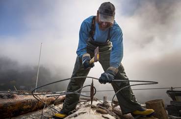 一个平静的夏日午后,哈蒙德和摩尔收集了不少漂浮在海面上的木材,这些从伐木公司“逃脱”到海上的漂流木对航海会有威胁,但对于像哈蒙德和摩尔这样有执照的原木打捞者来说,海上捞木挣钱谋生虽然风险不小,但他们干得得心应手,也是他们热爱的一份工作。