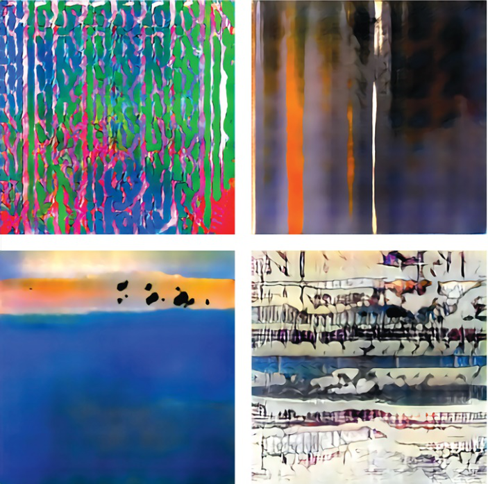 在编写AICAN时,我们利用了一种叫作“创造性对抗网络”的算法,让AICAN在两种对立的力量当中斗争。一方面,AICAN要学习已有作品的美学特征;另一方面,如果它创作的作品与已有的风格太接近,则会被惩罚。