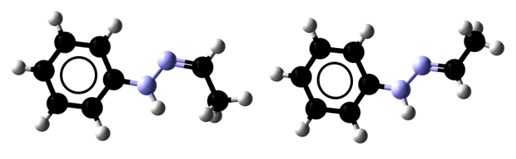 APH的两种异构体:作为固体,APH分子呈甲基向下的Z型(左);但液体APH还含有甲基向上的E异构体