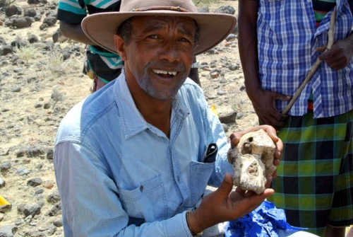 海尔-赛拉西博士手持头骨化石