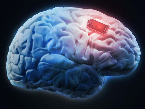 脑植入设备概念图。科学家正致力于研究出可以使人类直接用大脑打字以及通过“心灵感应”的方式彼此交流思想的方法