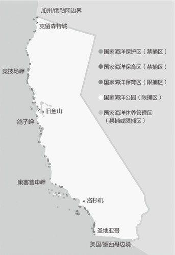 加州拥有世界上最大的海洋管理项目之一,拥有119个海洋保护区和5个州海洋休闲管理区,总面积为852平方英里。海洋连通性是海洋保护区网络设计中需要考虑的一个重要因素,因为生物在保护区之外的移动会使它们变得易受伤害。特别是,连通性影响着保护区规划人员如何决定一个保护区的最小面积,以确保当地种群中的大多数成体将被包含在其中,以及不同保护区之间的间距,因为海岸线上不同地区的种群可能会相互依赖以获得长期生存。