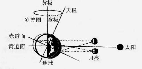 在月球引力作用下岁差和地轴章动示意图