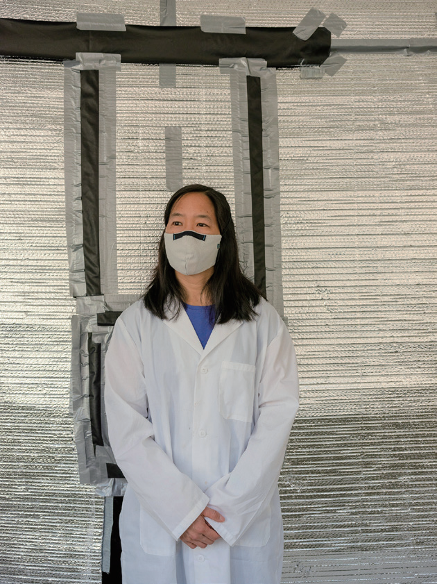琳赛 · 马尔站在弗吉尼亚理工大学实验室的烟雾室前。她表示,多年来,医疗机构都将她视为局外人
