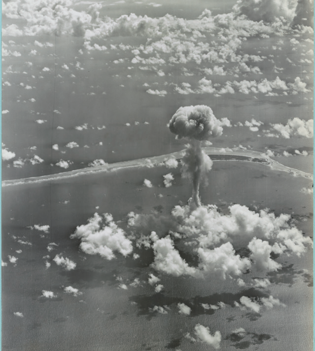 1946年7月,美国在“十字路口行动”中进行了一轮核试验,一朵蘑菇云随之出现在了比基尼环礁和几艘停泊该处的船只上空。数千只动物被放置在这些船上,以便科学家们观察核弹的辐射影响