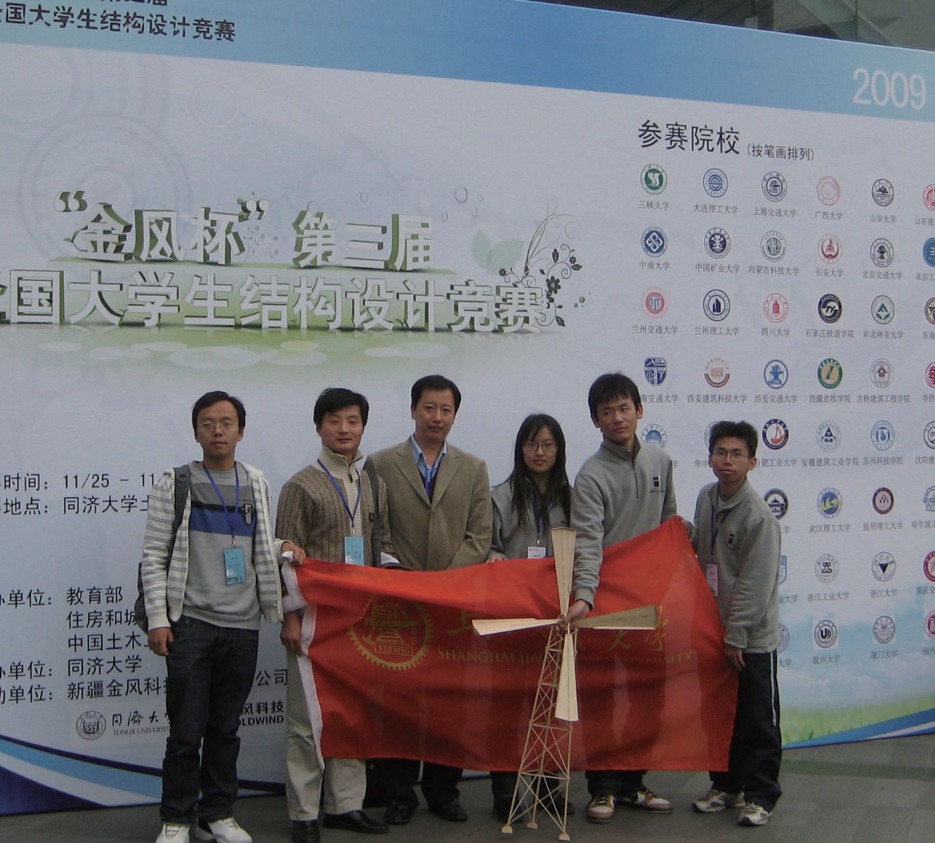 回溯上海交大本科四年,予冰坦陈前两年学得比较难,但自己愿意花时间,成绩在班级是居前的。大三时她有机会参加了全国大学生结构设计竞赛,这是国内土木工程专业最具影响力的大学生科技创新活动赛事,是教育部确定的全国九大大学生学科竞赛之一。参赛学生通常以小组为单位申报,提交的设计作品在校内先打擂台,拿到学校第一名者才能代表学校参加全国赛。最终冷予冰三人小组代表交大参加了2009年在同济大学举办的第三届全国大学生结构设计竞赛并获得一等奖。“当年的参赛作品是用薄木片设计搭建一个风力发电塔,要设计一个风力发电塔基座和风机叶片,在鼓风机风力作用下叶片转动发电,综合考虑模型重量、发电电压以及外形等计算得分。”冷予冰小组花了近三个月时间,从第一个模型开始不停地优化,用木片胶合成基座和叶片的形状是关键,在能承受一定载荷的前提下要求基座构件的截面越小、越轻越好。说起当时情景,予冰记忆犹新:“我们用一台鼓风机去吹基座上的叶片(叶片也是薄木片做的),叶片连着电容器可以发电,转得越快发电量越高。叶片的形状也是设计的内容。当时那道题目我们花了三个月时间在指导老师宋晓冰的帮助下不断优化,这是命题作文,白天上课,晚上就琢磨这个事。”予冰说了当时印象特别深的一件事:正式比赛场地是一个较开放的空间,学校提供他们的场地是室内环境,两者的风场不同。为了能更准确地模拟开放空间的风场,当时想到的办法是把窗户拆了,以接近室外开放环境。12月的夜晚开着鼓风机吹很冷,尽管瑟瑟发抖,但不论多晚,宋晓冰老师每天都陪伴参赛团队一起不断地试验、改进,或突发奇想或精雕细琢,看到发电值在上升大家就觉得要继续坚持,宋老师的鼓励、指导让大家深受鼓舞。最终我们顺利夺得了全国赛的一等奖。整个参赛过程予冰学习到了怎么考虑设计构型、怎么优化,对她以后硕博的学习启发很大。当时的指导老师宋晓冰后来成为予冰的硕博导师,也是科研道路上的引路人。实际上,予冰的收获还不止这些,三个月的参赛过程中他们三人组中的一位队友后来成了她的先生,成就了一段因赛结缘的佳话。