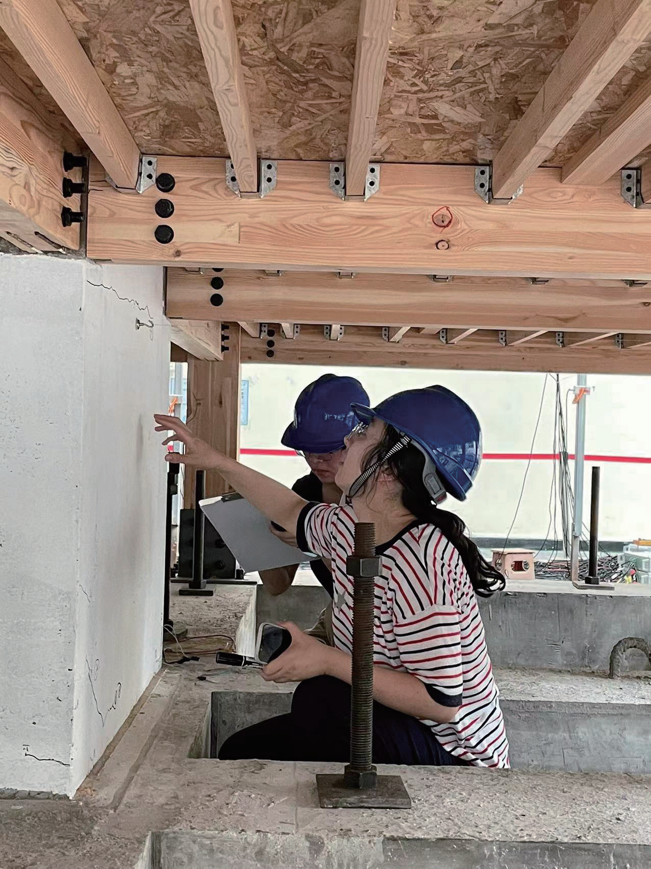 冷予冰是先念硕士,之后觉得自己真的感兴趣才去继续读博。博士课题是想研究了解核电站安全壳在极端荷载如地震、恐怖袭击等作用下的受力性能。安全壳的主体材料是钢板混凝土,导师让她硕士第二年就参与了相关课题,重点研究钢板混凝土组合结构的受力机理,这后来就成了她的博士论文题目。予冰说她尽管现在多与竹木建筑打交道,但本质还是研究结构受力的安全性问题,所以从硕士开始她的课题方向是相通的:“本科是在一个比较宽泛的范围内学习基础知识,硕士是在这个基础上进一步学习解决问题的方法,规划做实验的方案,博士就进一步要去做机理和理论分析。这一路看似越走越窄,其实面对不同问题的求解要求我们要越学越多。不能路越走越窄,逻辑方法应用面应该越来越宽,这也是在宋晓冰老师的指导下同时结合自己实践后总结出来的。”2017年初,予冰的博士论文答辩顺利通过并受到好评。求职时,当时在上海建科院工作的陈溪师姐(2015级星友)推荐她来建科院,由于综合素质优秀,经一轮面试她就非常顺利地拿到录用通知,以博士后身份加入许清风博士带领的团队,许博士和上海交大的赵金城教授成为她的博后导师,并商定以木竹结构方向作为博后研究课题。