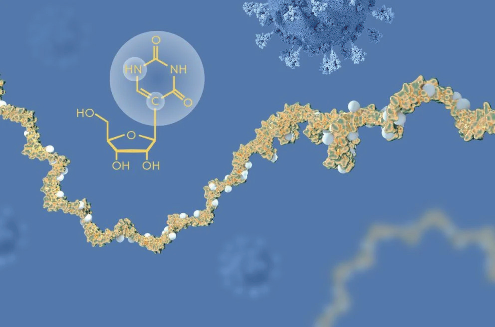 当时卡里科和魏斯曼意识到,人工创建的RNA与天然RNA之间必定存在某些显著化学差异。一系列实验揭示了这种差异在于尿嘧啶的确切化学成分。将尿嘧啶成分调整为人类版本(修改mRNA天然尿苷上的碱基,使其变成“假尿苷”),问题就解决了。