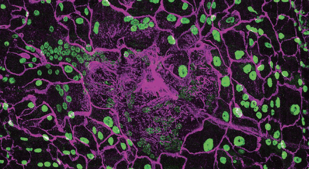 当洛西克和福克斯几天后观察果蝇的伤口时,他们发现这些所谓的“多倍体细胞”才是治疗伤口的主要细胞,而非干细胞。在针刺的部位,具有多个细胞核的巨型细胞快速封闭了伤口。福克斯回忆道:“我们同时发现了同样的现象,并且干细胞和它无关。”