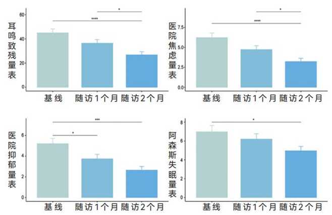 基于复旦耳鸣RS的数据显示,在坚持使用RS提供的音乐治疗两个月以后,耳鸣致残量表、医院焦虑抑郁量表以及阿森斯失眠量表的分值均显著下降,表明声治疗对耳鸣的有效性。