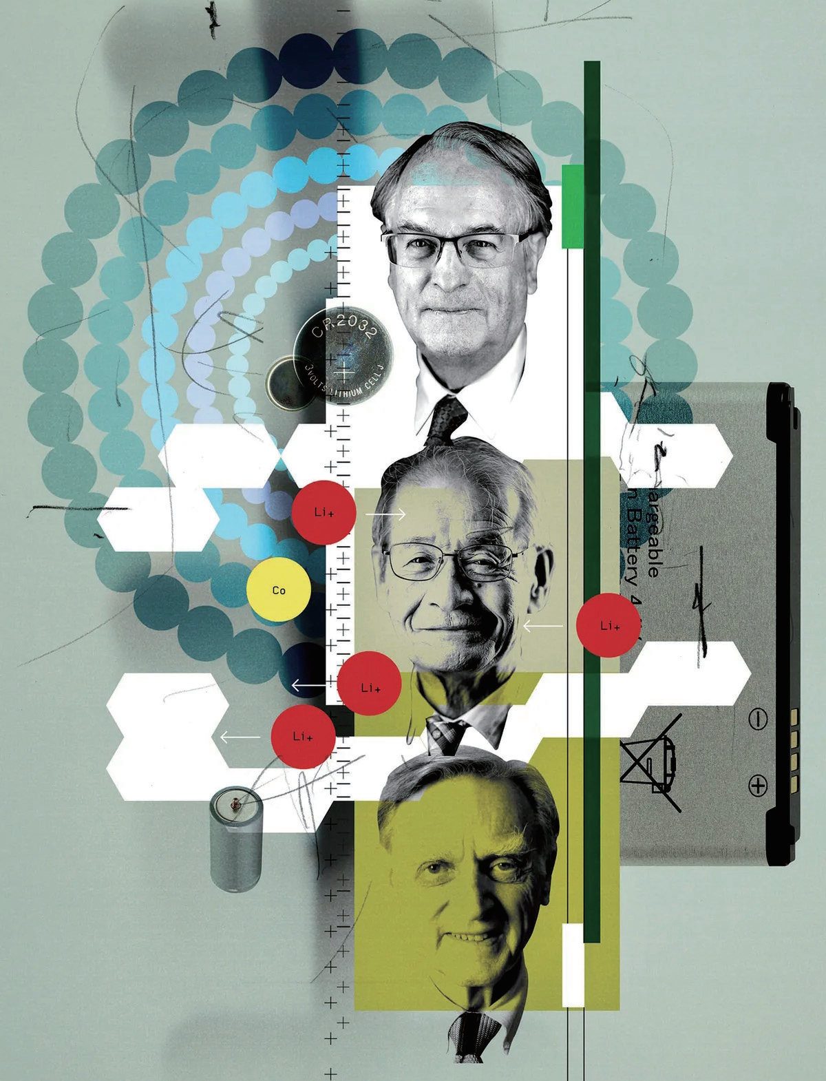 可充电锂离子电池的三位先驱——威廷汉、古迪纳夫和吉野彰——都没能从巨量利润中分得一杯羹。不过三人共同获得了2019年诺贝尔化学奖。根据新闻报道,已经退休的吉尾西对于自己没被列入诺贝尔奖名单表达了不满。