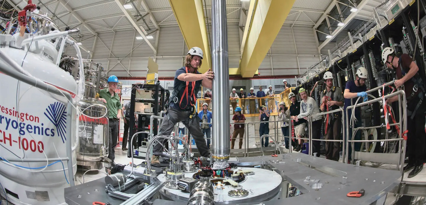 工作人员正在安装一个包含反氢的磁场装置,它是CERN反氢激光物理仪器的一部分