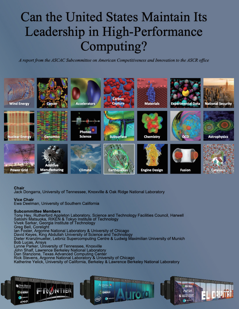 在至关重要的高性能计算(HPC)领域,美国已不再是当之无愧的全球领导者。日本、欧盟和中国已经推出了与美国最快的超级计算机不相上下的系统。从半导体到科学软件,任何产品的供应链都呈现出全球化特征。然而,美国的经济前景和安全在很大程度上取决于美国是否有能力以比竞争对手更快的速度进行创新,而创新的速度越来越取决于大规模计算科学和工程,因此也越来越取决于高性能计算。美国应如何应对这一挑战?本报告旨在就这一重要问题发起一场新的、可能具有变革意义的全国性讨论。