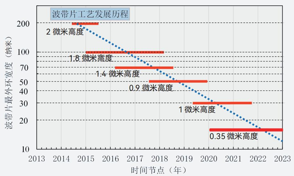图8 自2013年以来,笔者团队自主研发电子束光刻纳米制造工艺,成功研制的X射线波带片透镜水平随时间的发展历程